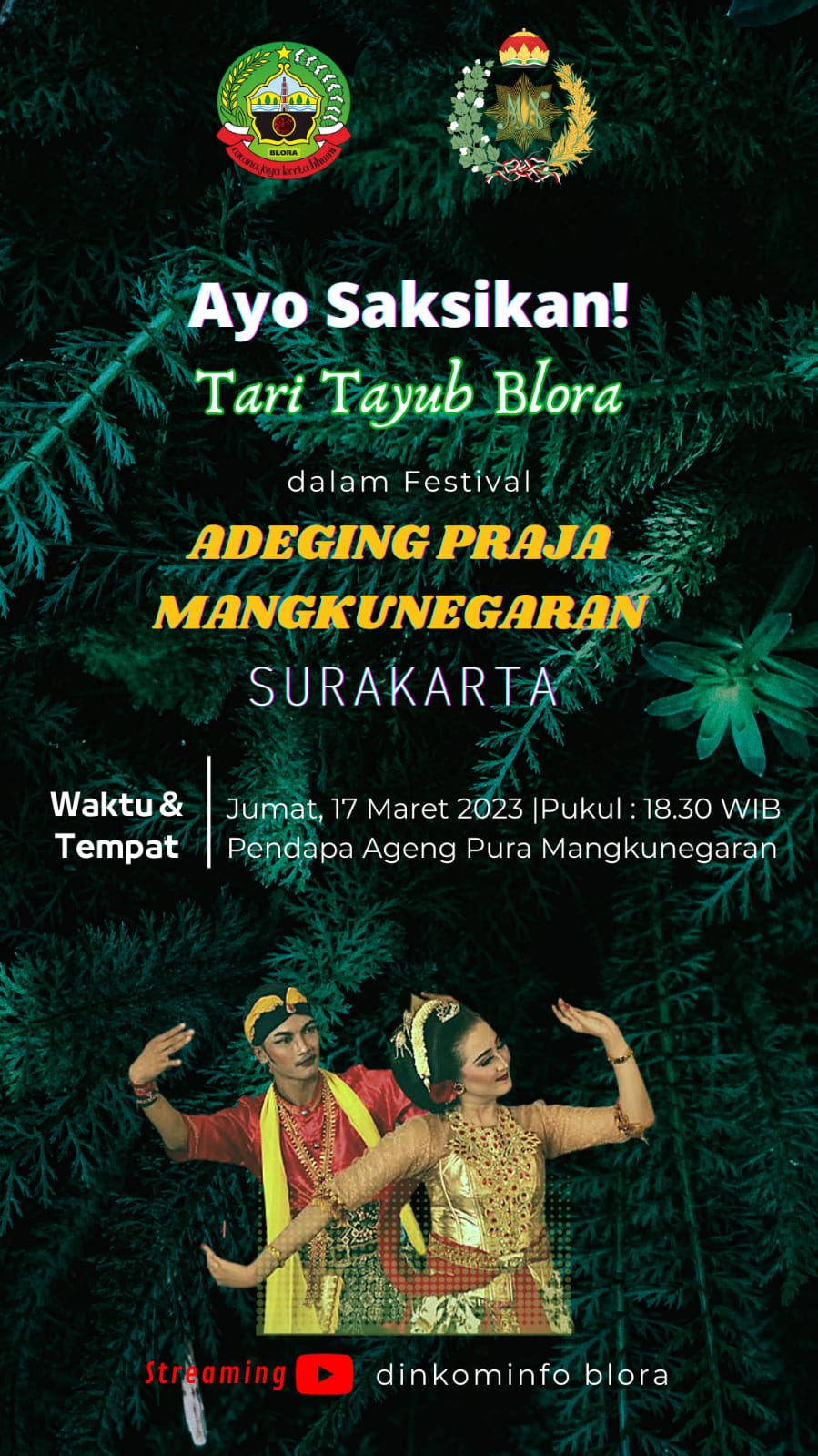 “Kami akan siarkan langsung, live streaming rangkaian acara malam nanti dari Pendhapa Ageng Pura Mangkunegaran,” kata Kepala Dinkominfo Blora Pratikto Nugroho, Jumat (17/3/2023).