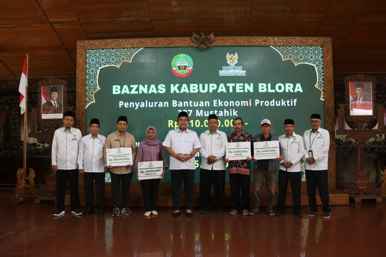 Pemerintah kabupaten Blora melalui Badan Amil Zakat Nasional (Baznas) menyalurkan bantuan Ekonomi Produktif dan Penyaluran bantuan bedah rumah kepada keluarga stunting di pendopo rumah dinas Bupati, Jumat (27/12/2024).