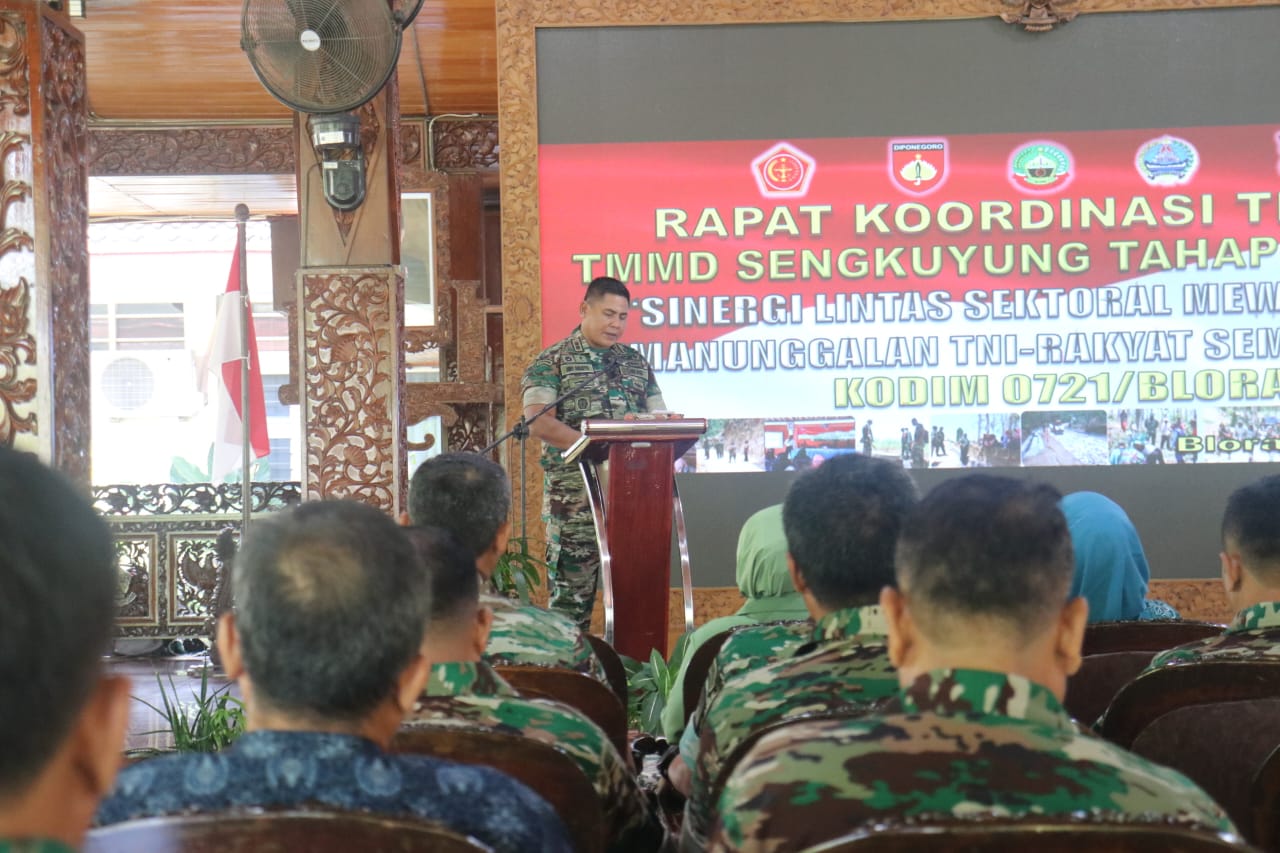 Sementara itu dalam Rakornis TMMD Sengkuyung itu, Dandim 0721 Blora Letkol Inf Andy Soelistyo K.P, S.Sos, M.Tr (Han) menjelaskan, program TMMD Sengkuyung tahap I tahun 2023 akan dilaksanakan selama 30 hari pada awal Mei 2023 ini dan selesai pada awal Juni 2023. Adapun sasaran lokasi program untuk tahap I ini adalah Desa Tunjungan, Kecamatan Tunjungan.