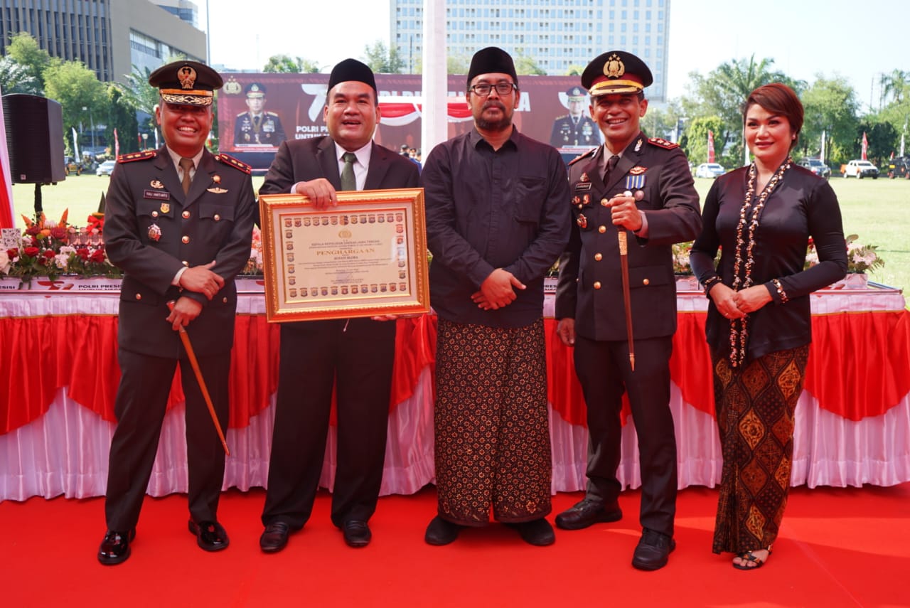 Penghargaan diberikan usai upacara peringatan Hari Bhayangkara di Lapangan Pancasila Simpang Lima Semarang, Sabtu (1/7/2023).