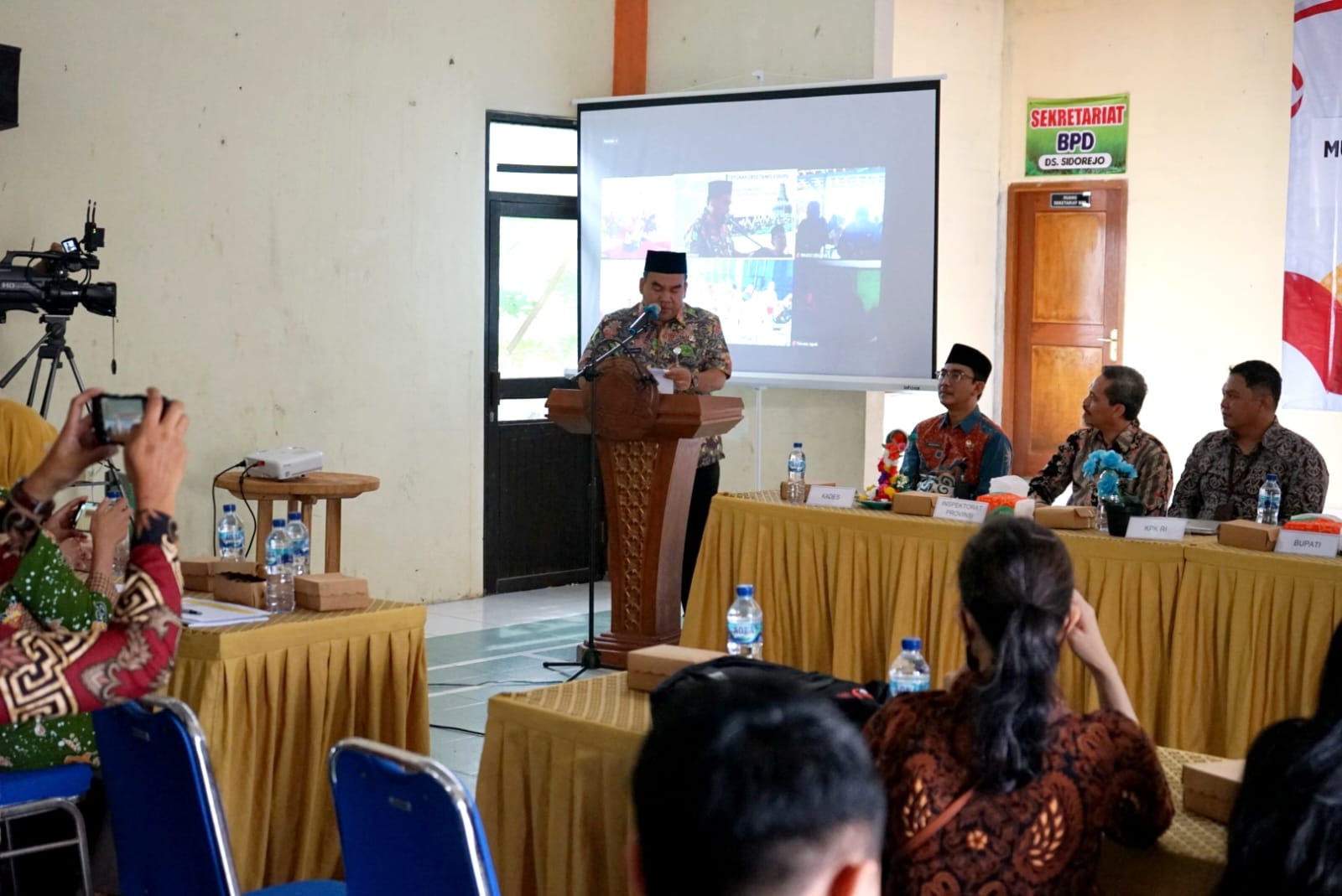 Turut hadir tim KPK RI yang dipimpin Dion Hardika Sumarto, selaku Analis Pemberantasan Tipikor KPK, bersama anggotanya Desi Aryati Sulastri, dan Herlina Jeane Aldian. Kemudian ada Plt. Inspektur Blora, Irfan Agustian Iswandaru, AP., M.Si., Sekretaris Dinas PMD, dan Forkopimcam Kedungtuban.