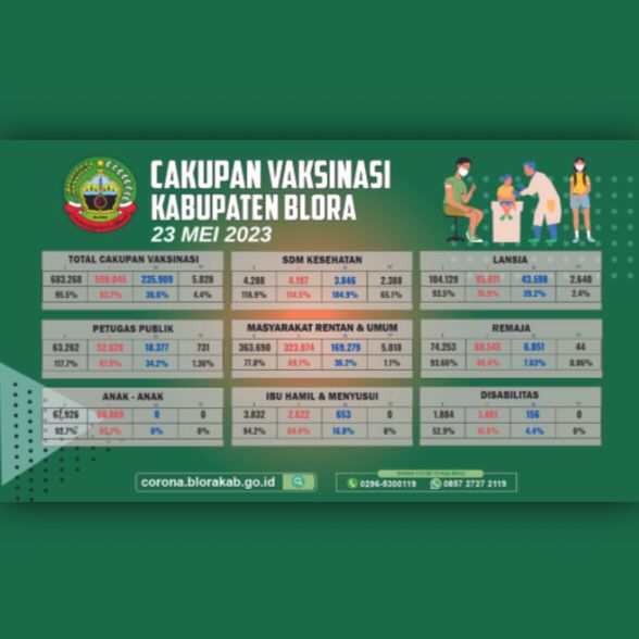 RILISJATENG.COM- Pemerintah Kabupaten Blora terus menyampaikan hasil monitoring data Covid-19 di tahun 2023 dan cakupan Vaksinasi.