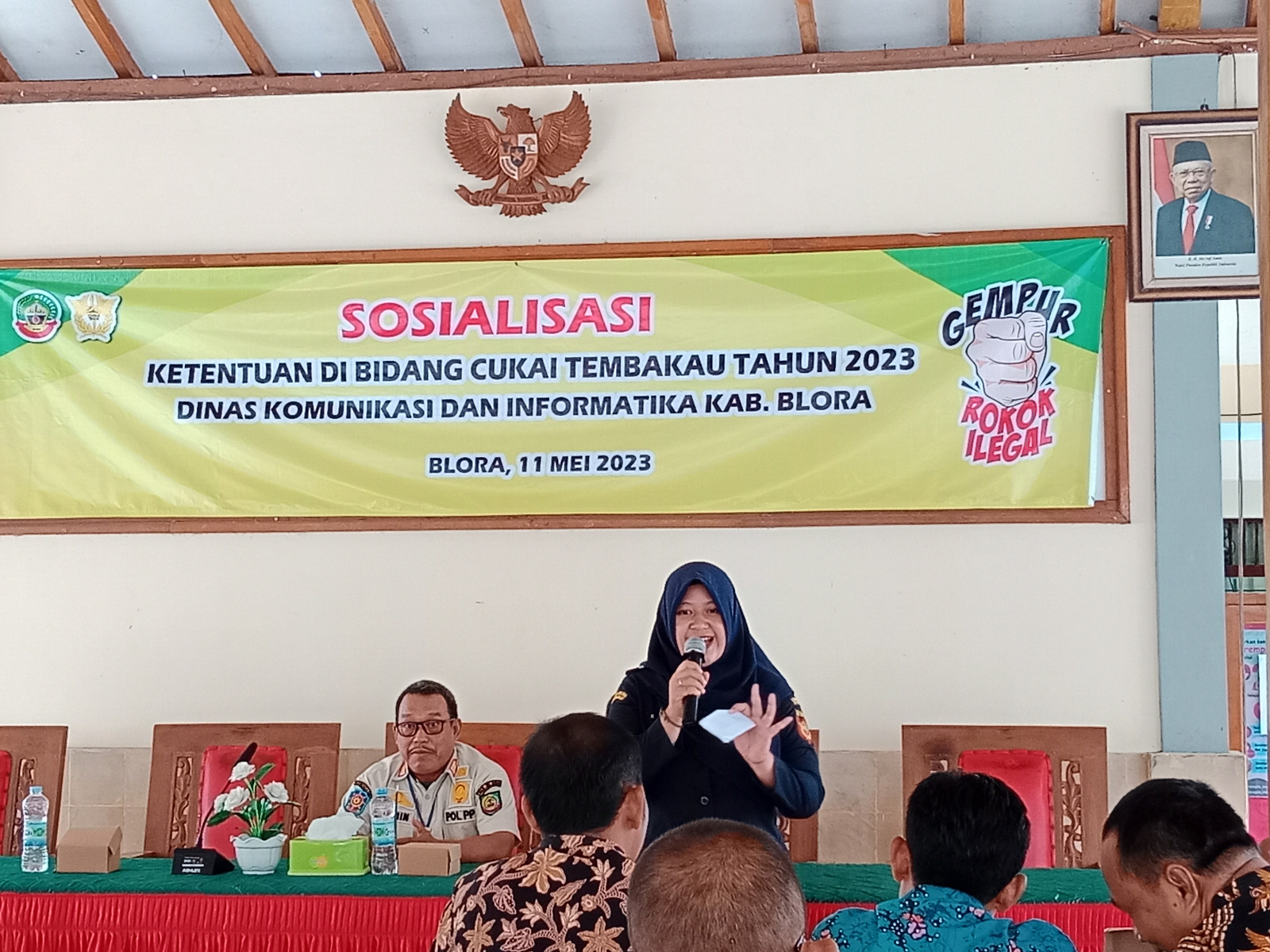 Sebelumnya, Sekretaris Dinkominfo Blora Ir. Tedi Rindaryo Widodo dalam sambutannya menyampaikan bahwa, tujuan diselenggarakannya sosialisasi, untuk meningkatkan pemahaman masyarakat/peserta terkait manfaat dan ketentuan bidang cukai.