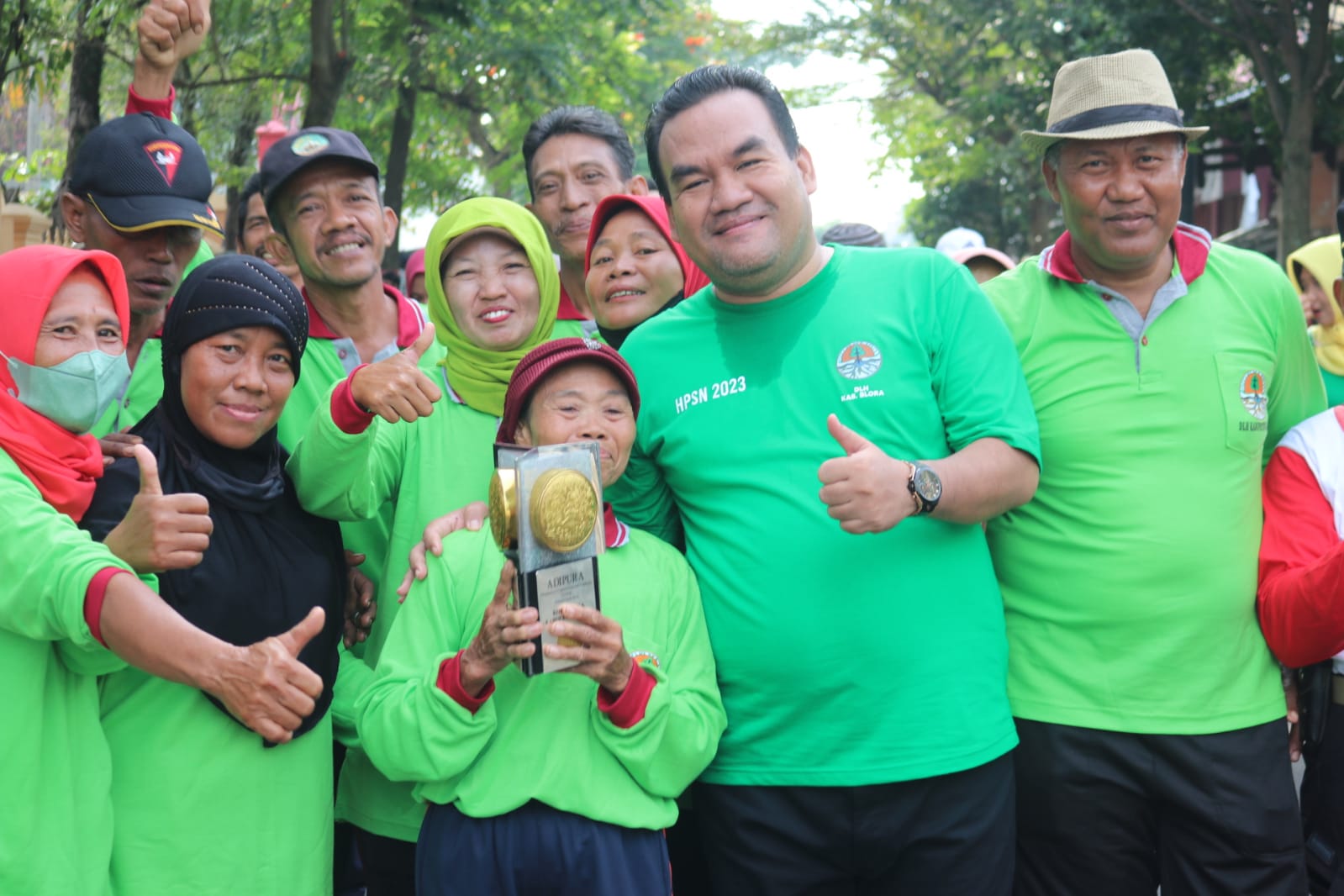 Semuanya tampak bahagia. Wajar, karena sudah lima tahun lebih Blora gagal mendapatkan Adipura (terakhir 2016). Dan tahun ini berhasil mendapatkan Adipura kategori Kota Kecil Terbersih dengan pengelolaan sampah yang baik.