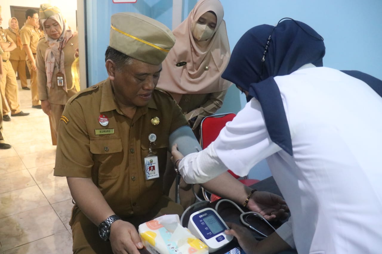 Sekda menyambut baik adanya posko tersebut, dan sempatkan meninjau ruangan posko sekaligus mengecek tekanan darah dengan dokter yang berjaga . Juga nampak berdiskusi dengan dokter dan perawat yang berjaga kaitannya sarana dan prasarana apa saja yang diperlukan untuk menunjang layanan posko tersebut.